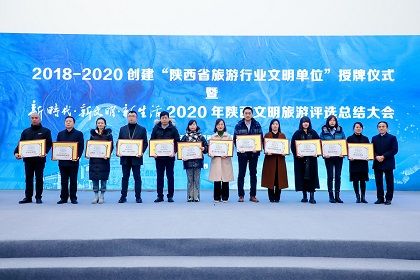 由陕西省文化和旅游厅主办、《华商报》社承办的2018-2020创建“陕西省旅游行业文明单位”授牌仪式暨新时代·新文明·新生活2020年陕西文明旅游评选总结大会于12月28日举行。西安世博园喜获“2020陕西文明旅游景区”奖,西安世博园赵梦圆被评为“2020陕西文明旅游督(引)导员”,运营公司相关领导带队出席领奖。
