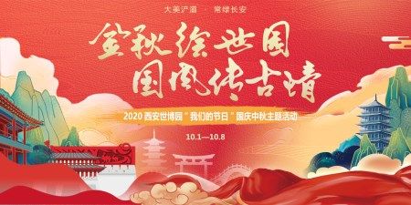 诗韵中秋,礼赞国庆。双节将至,西安世博园在10月1日至8日将举办金秋绘世园 国风传古情——2020西安世博园“我们的节日”国庆中秋主题活动。汇集中秋文艺汇演、国潮华服日、城市腔调艺术节、国潮云端音乐汇、宋城特色巡游快闪表演、非遗文化手作展等丰富多彩的节庆活动,全面展示西安世博园文旅板块内容,引领广大游客度过一个欢乐、健康的国庆中秋佳节。