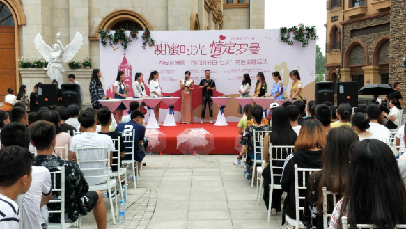 清澈而透明、跳跃而平静,演奏家用华美的乐章在世园罗曼街区表达着爱情的美好,悠扬轻快的旋律让游客们纷纷坠入棉花糖般的舒适感,伴随着美妙的音乐,舞者们细腻迷人的舞步,轻云般慢移、旋风般疾转,成为罗曼街区一道亮丽的风景线,世博园为爱“搭桥”,精心策划的“甜蜜时光 情定罗曼”——西安世博园‘我们的节日·七夕’特色主题活动,让游客们度过了一个浪漫甜蜜的七夕情人节。