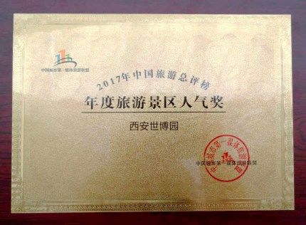 西安世博园荣获2017中国旅游总评榜年度旅游景区人气奖