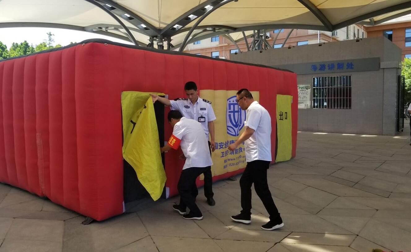 在消防安全培训中,宣教员向参加人员重点介绍了突发火灾事件的处理方法,结合景区实际,进行了消防设施、灭火器材、火灾初期扑救、应急疏散和自救逃生等消防安全知识培训。在消防逃生演练中,在宣教员的指导下,参加人员两人一队进入现场,身体压低,捂住口鼻,按照疏散指示标志从安全疏散通道出口撤离。