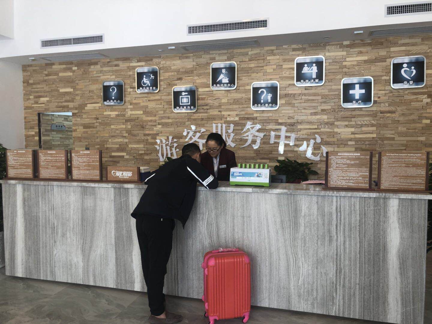 西安世博园地铁口新游客服务中心已于近期向广大游客开放。新游客服务中心位于地铁三号线香湖湾站附近西入口区域,总面积720平方米,环境舒适,功能齐全。休息区域设置座椅20排,可容纳休息游客近百人,完全能够满足客流高峰时段游客休息需求。