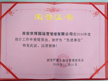 1月19日上午,浐灞生态区召开了统计工作会议,会议对管委会相关部门、区内各企事业单位2016年统计工作给予肯定,并对工作中涌现出的先进单位和先进个人进行了表彰、颁奖,世博园运营公司作为规上服务业代表,获得“先进单位”称号。