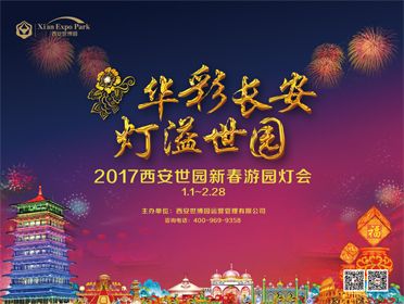 1月1日至2月28日,2017西安世园新春游园灯会将在西安世博园得宝门举行。本届灯会以“和谐、交融、发展”为主题,计划展示43组大型彩灯,选用绿色、环保、节能的高级材质,并引进声、光、电等高科技表现手法,结合LED等现代节能光源,赋予彩灯强烈的表现力,体现鲜明的时代感。同时以世博园国内展园为依托、融入各省文化内涵,用璀璨的灯光和造型加以装饰,打造出具有区域文化风情的特色灯会,其中有东北三省的冰雪世界,华北的国色天香中国韵,华西区域的美食之都、福到万家、熊猫乐园,华南区域的鸟语花香、扬帆起航、吉祥平安,更有港澳台灯组同宗同源、共度佳节等等。此次灯会最大的亮点是以“一带一路”为主题,用精美的大型彩灯搭建出东起长安,贯穿中亚、西亚,最终到达罗马的“丝绸之路”,这组灯长达100多米,由百余名多次参加过国际彩灯制作的能工巧匠合力完成,色彩斑斓、璀璨无比。
