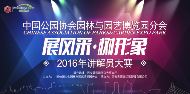 此次中国公园协会园林与园艺博览园分会2016讲解大赛由中国公园协会园林与园艺博览园分会主办,西安世博园运营管理有限公司承办。大赛以“展风采 树形象”为主题,旨在彰显讲解员律动的青春,飞扬的风采。