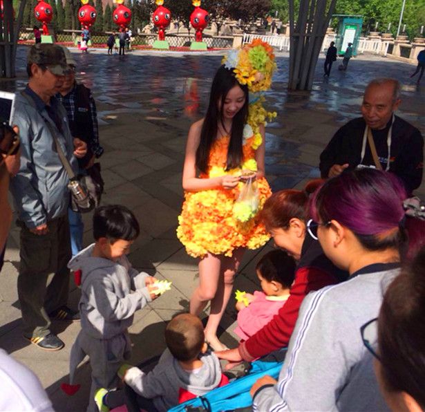 “花仙子”在发放纪念卡片