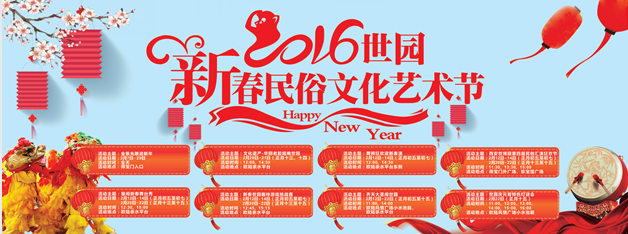 作为陕西省首家免费开放的国家4A级旅游景区,西安世博园秉承“时尚、动感、欢乐、健康”的风格定位,在春节期间将推出“2016世园新春民俗文化艺术节”系列活动,2月12日至22日(正月初五至十五)期间,园区内每天都有好戏上演,精彩不断,将为广大游客朋友献上一道热闹喜庆的节日文化盛宴,陪您开开心心过大年。