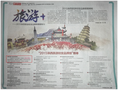 西安世博园荣登“2015陕西旅游创变品牌榜”