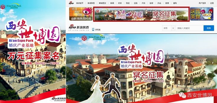 西安世博园是西安市及周边地区市民婚纱摄影外景地首选之地,被誉为“最幸福景区”。即将建成的西安世博园婚庆产业基地更是融合婚纱摄影、婚礼宴会、婚庆采购等全行业产业链整合的西部地区规模最大的婚庆业集群。为提高婚庆基地的知名度和美誉度,西安世博园于10月26日至11月4日期间面向公众有奖征集基地案名,公众通过西安世博园官方微信、微博、新浪网专题页面及西安世博园投稿邮箱等多个渠道了解活动详情并投稿。