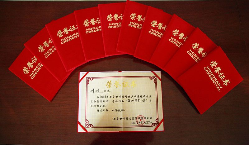 在完成对所有征集作品的初步筛选及网络投票环节之后,经我方评议讨论,作品“欧洲罗曼小镇”荣获西安世博园婚庆产业基地案名征集活动创意金奖,作品“丘比特庄园”、“世园欧陆小镇”、“丝路婚庆谷”、“玫瑰小镇”、“矢车菊小镇”、“布列瑟农小镇”、“爱丽丝小镇”、“温莎城堡”、“维罗纳庄园”荣获优秀创意奖。