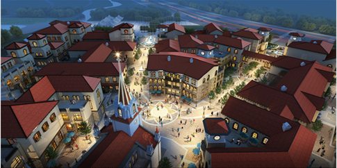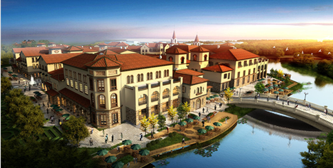 自由奔放的欧式风格建筑,移步换景的生态园林,建筑单体以自身为中心自由布局,但单体之间的组合结果却能显示出新的秩序;舒适宜人的街巷,蜿蜒曲折时而收放自如;红色陶瓦的屋顶,展现欧洲的浪漫与闲适;厚重的毛面石材,体现历史的厚重。纵观基地,楼群错落有序,景观灵动变幻,倾力打造出灵动、浪漫的欧洲小镇。