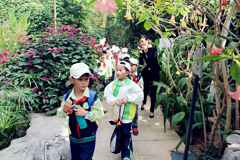 小朋友们参观世博园自然馆
