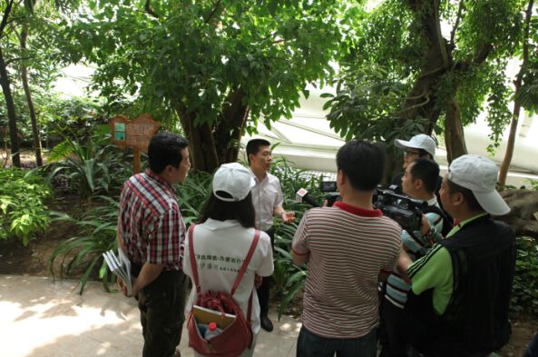 随后,考察团来到自然馆,参观了佛教植物展示区,其中,有佛教礼仪植物的典型代表“五树六花”,包括菩提树、高山榕、贝叶棕、槟榔、糖棕和荷花、文殊兰、黄姜花、鸡蛋花、缅桂花(黄兰)及地涌金莲等。考察团还参观了无忧树、曼陀罗等佛教植物。自然馆的一株百年菩提树引起了媒体的关注,记者们纷纷驻足,进行拍摄。