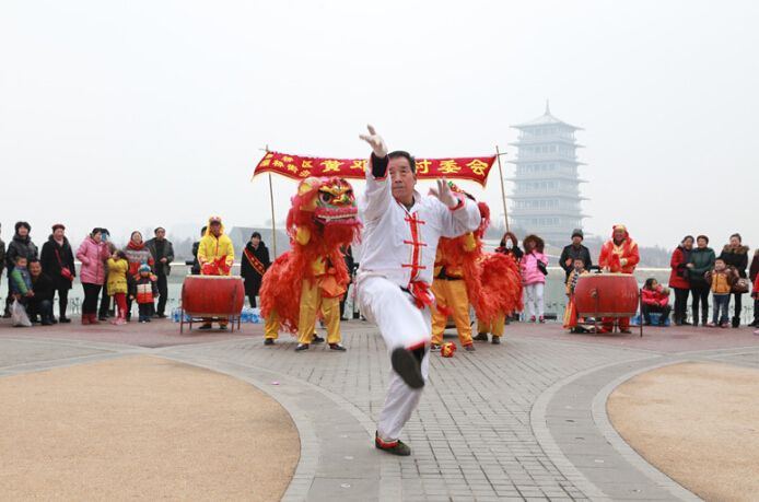 得宝门内广场上演一场精彩的武术表演
