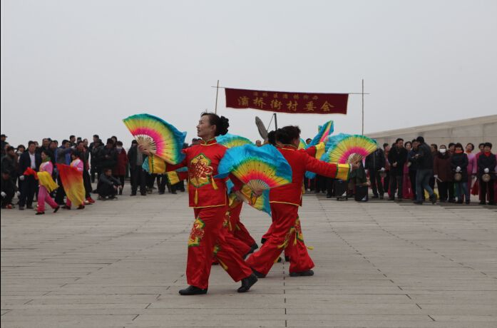 灞桥街村文艺队在创意馆前广场表演扇子舞
