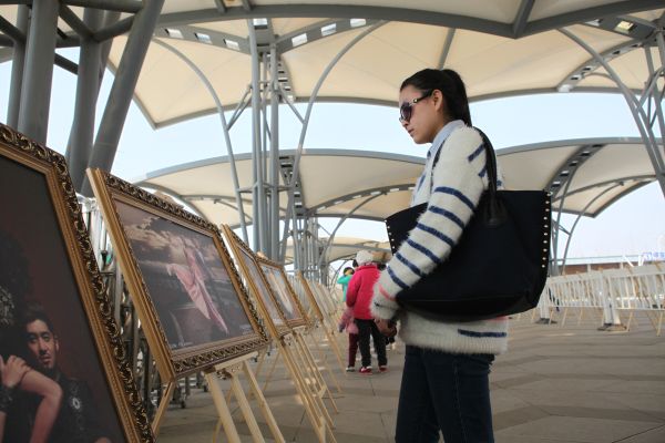 入园游客纷纷驻足参观摄影展