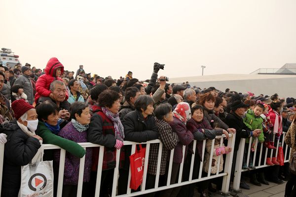 早晨10点多游客们早早赶到世博园创意馆前广场观看表演