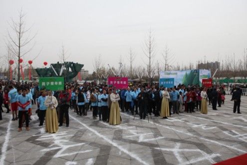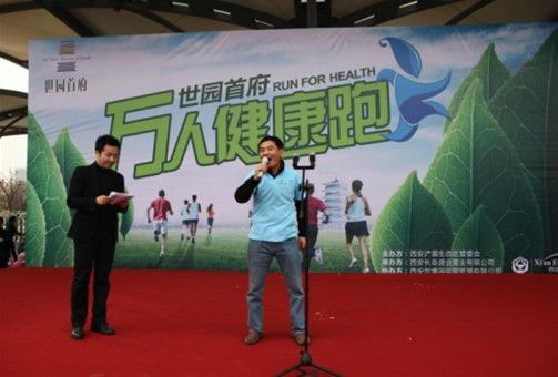 下午2时,世博园得宝门外广场上,数千名前来参加“世园首府首届万人健康跑”活动的市民在专业健身教练的带领下做热身运动,随着动感十足的音乐声慢慢活动全身。本次活动由长岛盛业公司主办。