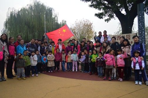 参加本次活动的小朋友与家长们在新西兰园前合影留念